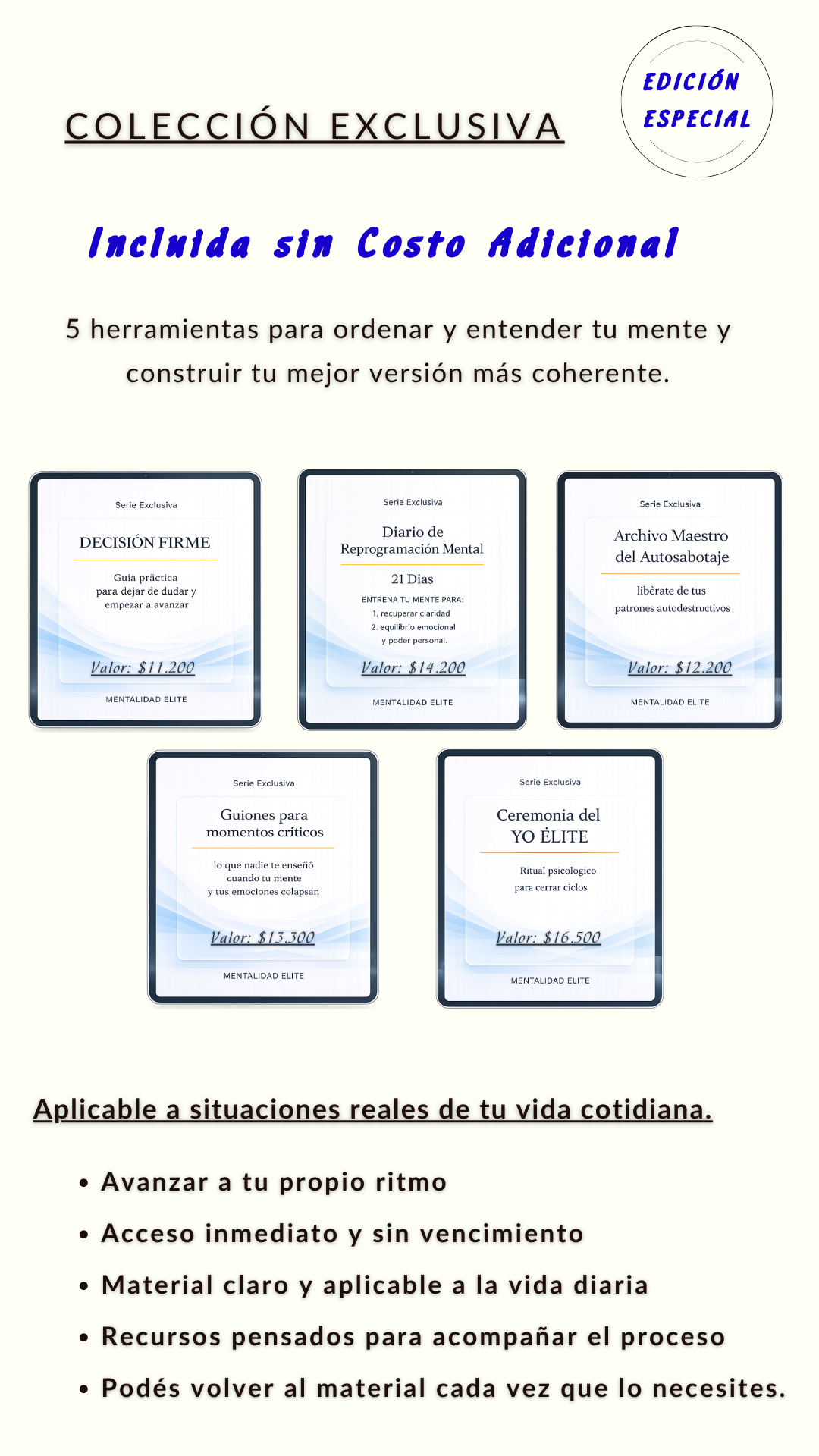 El manual me dio un mapa para entender por qué estaba tan saturada mentalmente, pero lo que terminó de hacer la diferencia fueron los bonos. El Diario de 21 días fue clave: me ayudó a bajar a tierra lo que sentía y ver cómo cambiaba mi forma de reaccionar día a día.